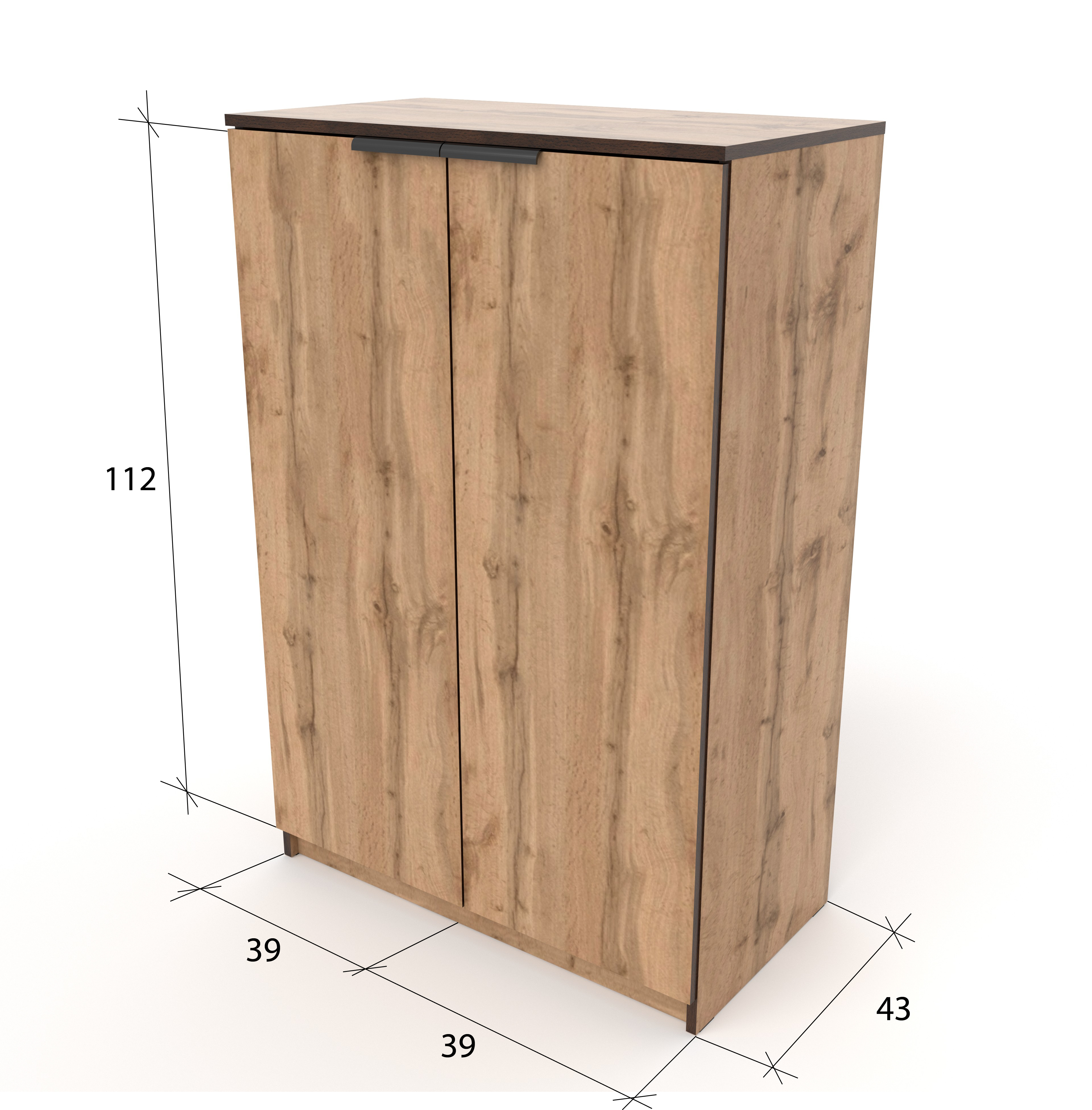 - Оснащен одной секцией с двумя распашными дверцами. Внутри — широкие полки. Пространства достаточно для хранения обуви, коробок, папок, бытовой техники, текстиля или предметов хозяйственного назначения.