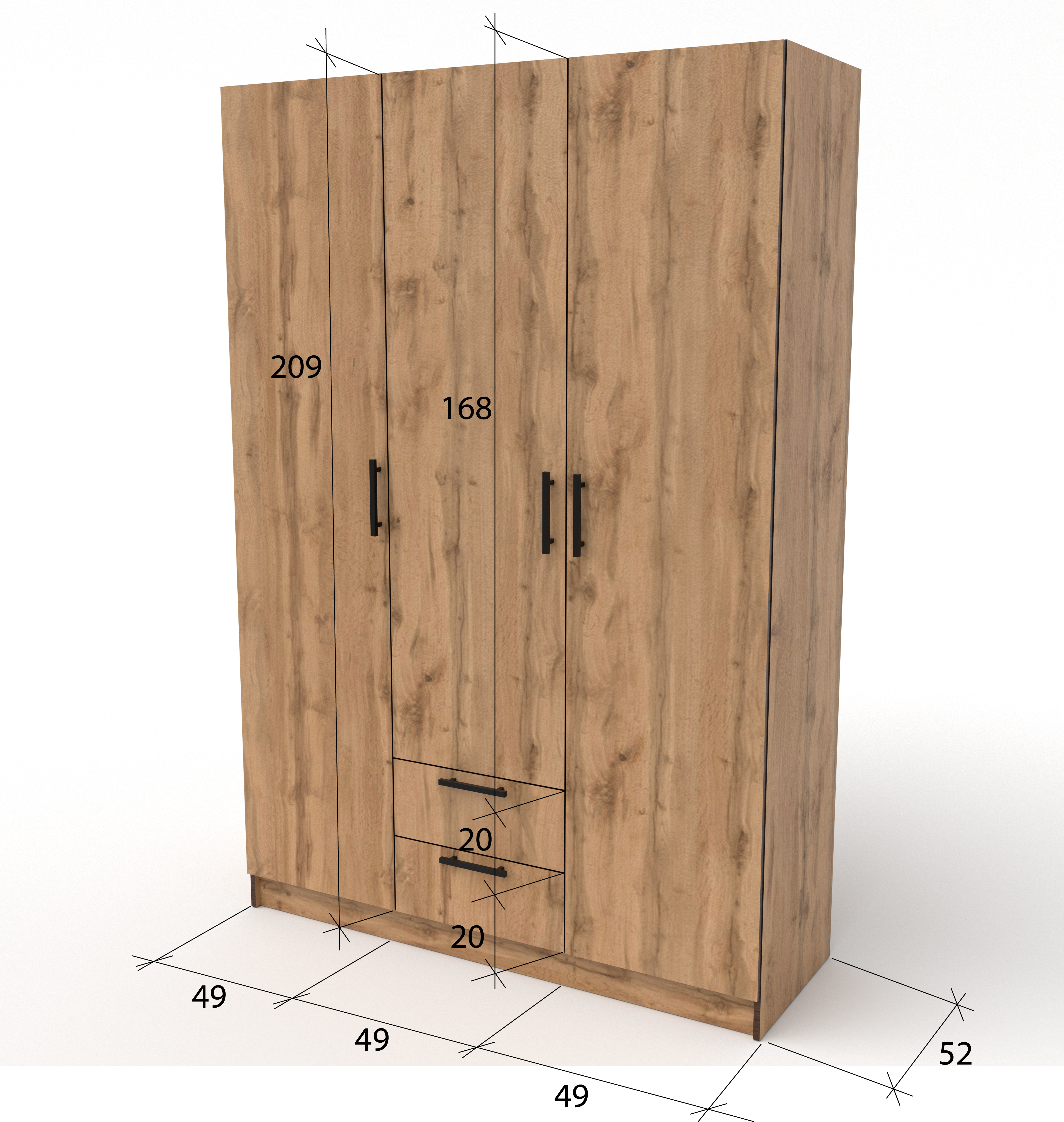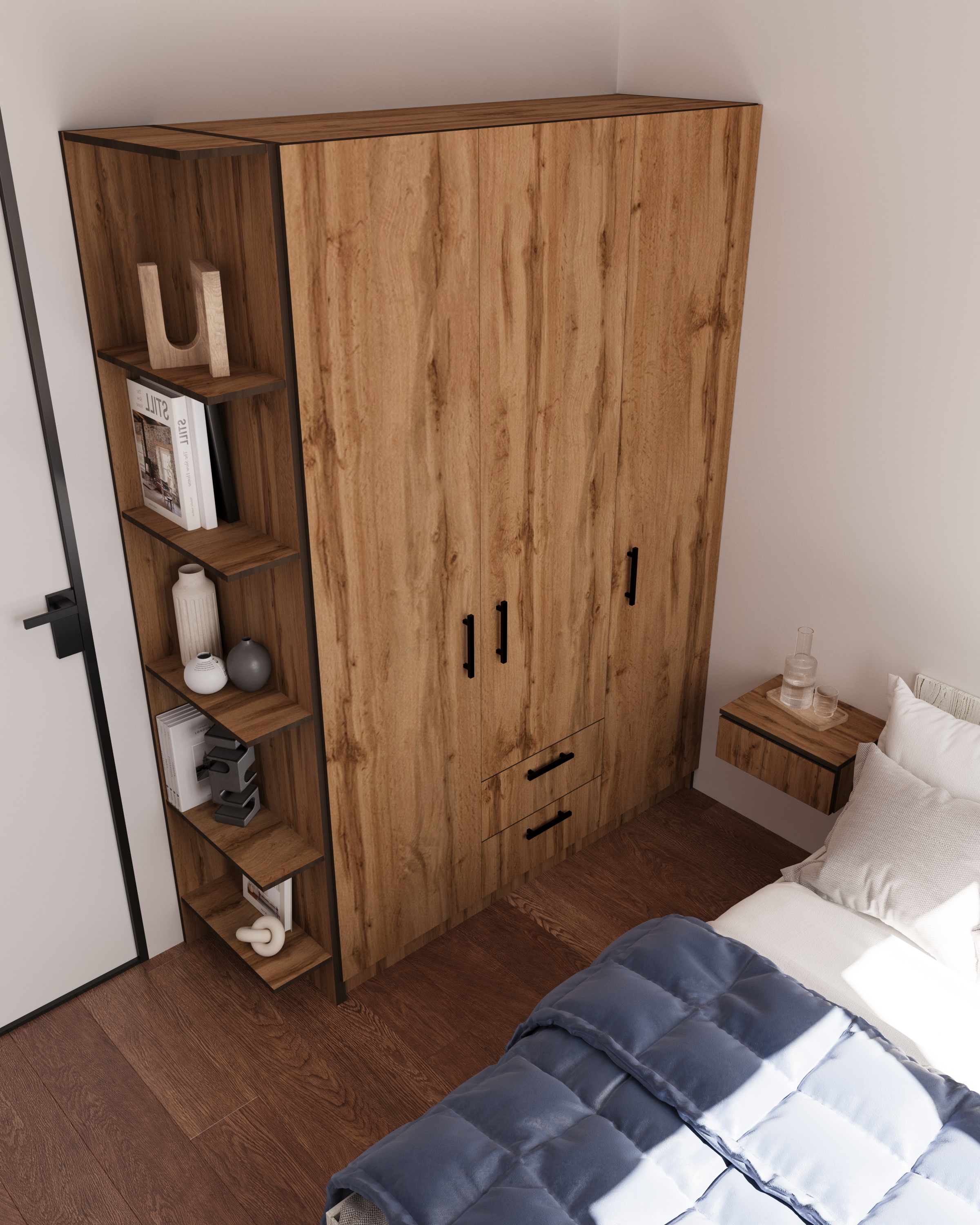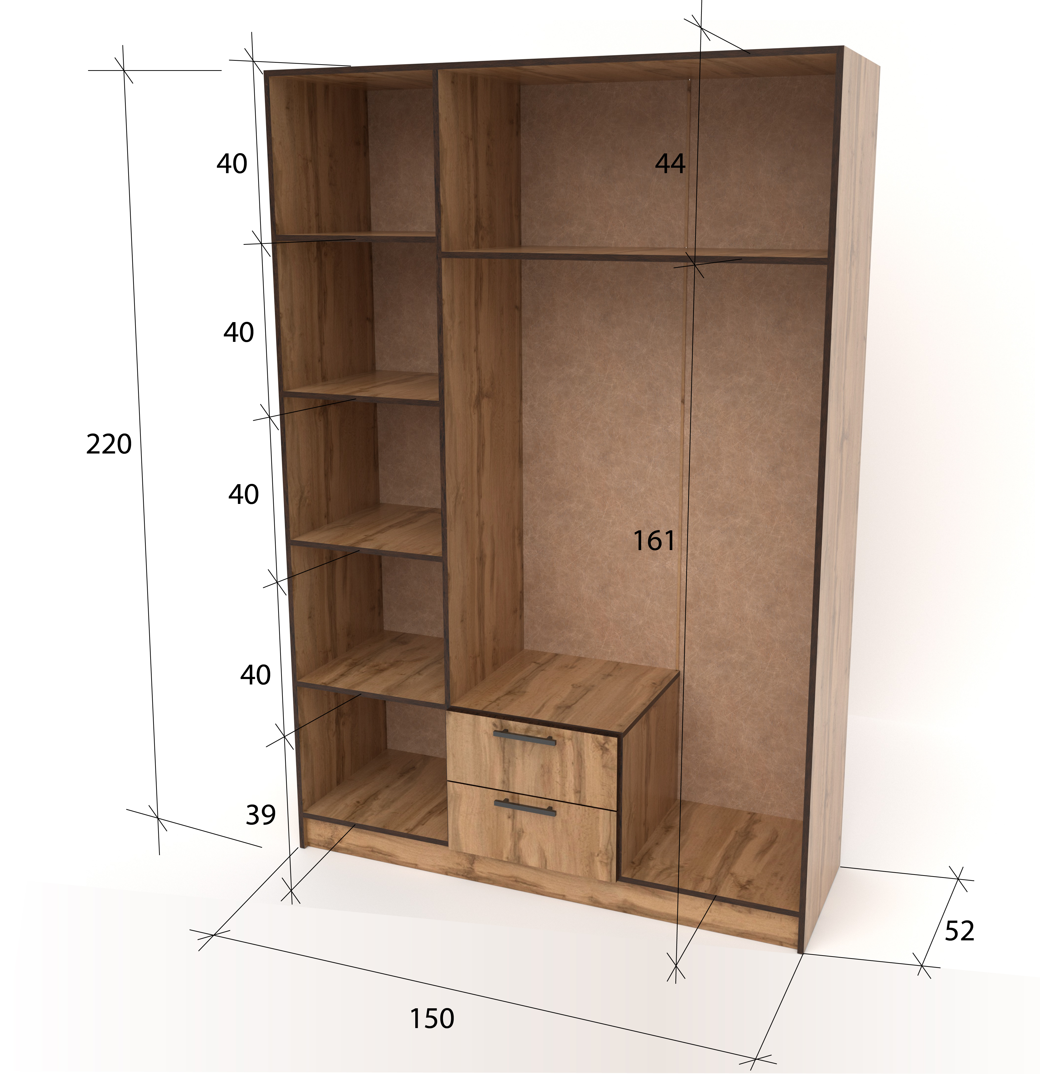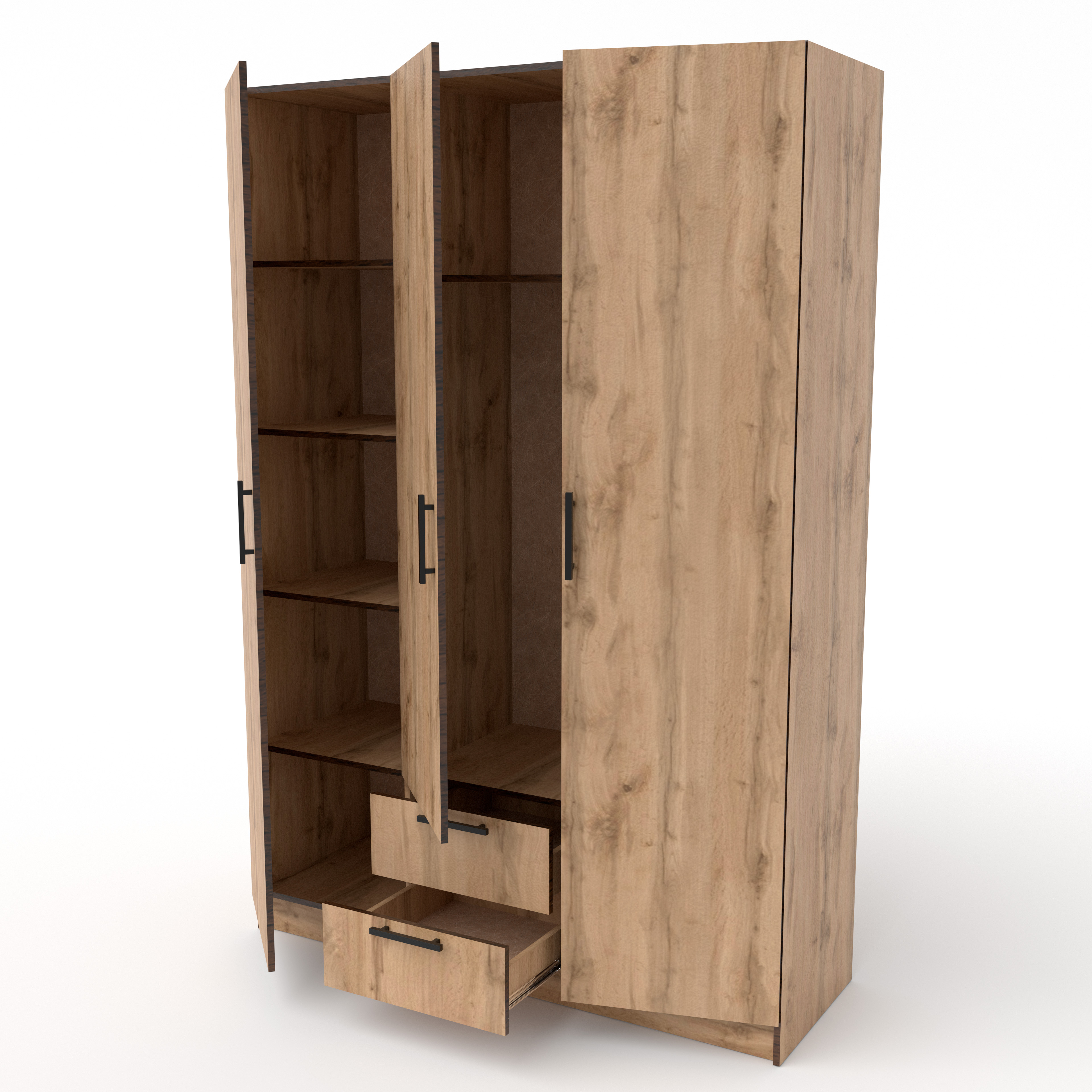 Шкаф ТВОЙ — это эргономичный и вместительный модуль, объединяющий в себе функции классического гардероба и комода. Идеален для спален, детских, прихожих, гостевых комнат и даже офисов, где важно компактное, но хорошо организованное хранение. Модель представляет собой трехстворчатый шкаф с двумя выдвижными ящиками в средней нижней части: