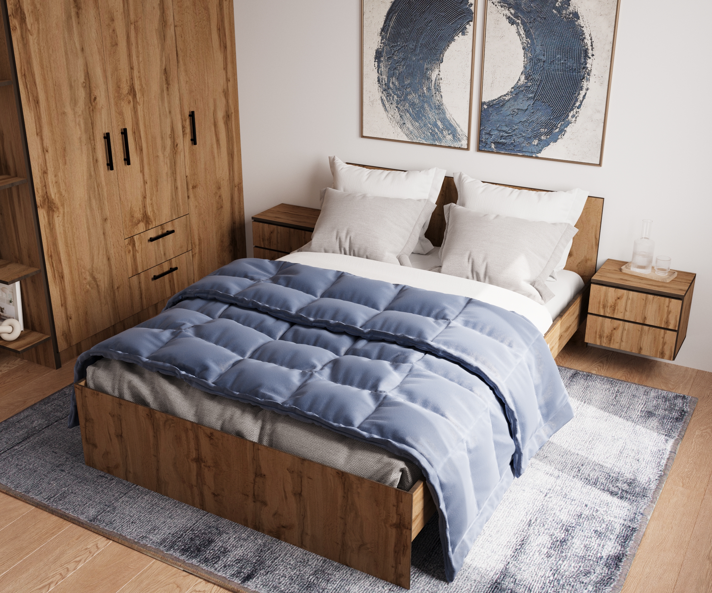 Двуспальная кровать серии ТВОЙ —представляет собой простой минималистичный внешний вид, без лишнего декора, такой дизайн делает кровать универсальным элементом мебели, создает пространство для идеального отдыха. Внутренняя обвязка имеет несколько поперечных широких перекладин, с центральной опорой.