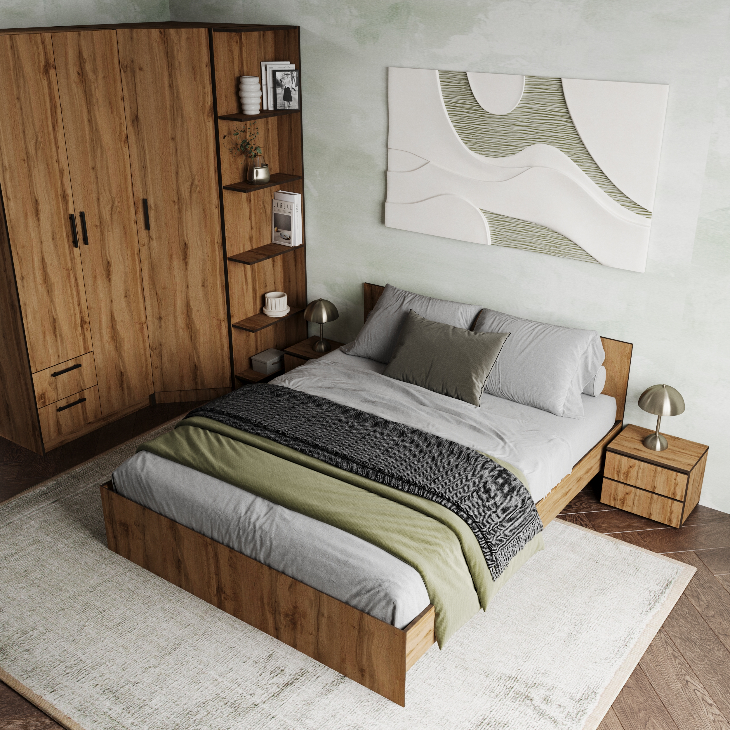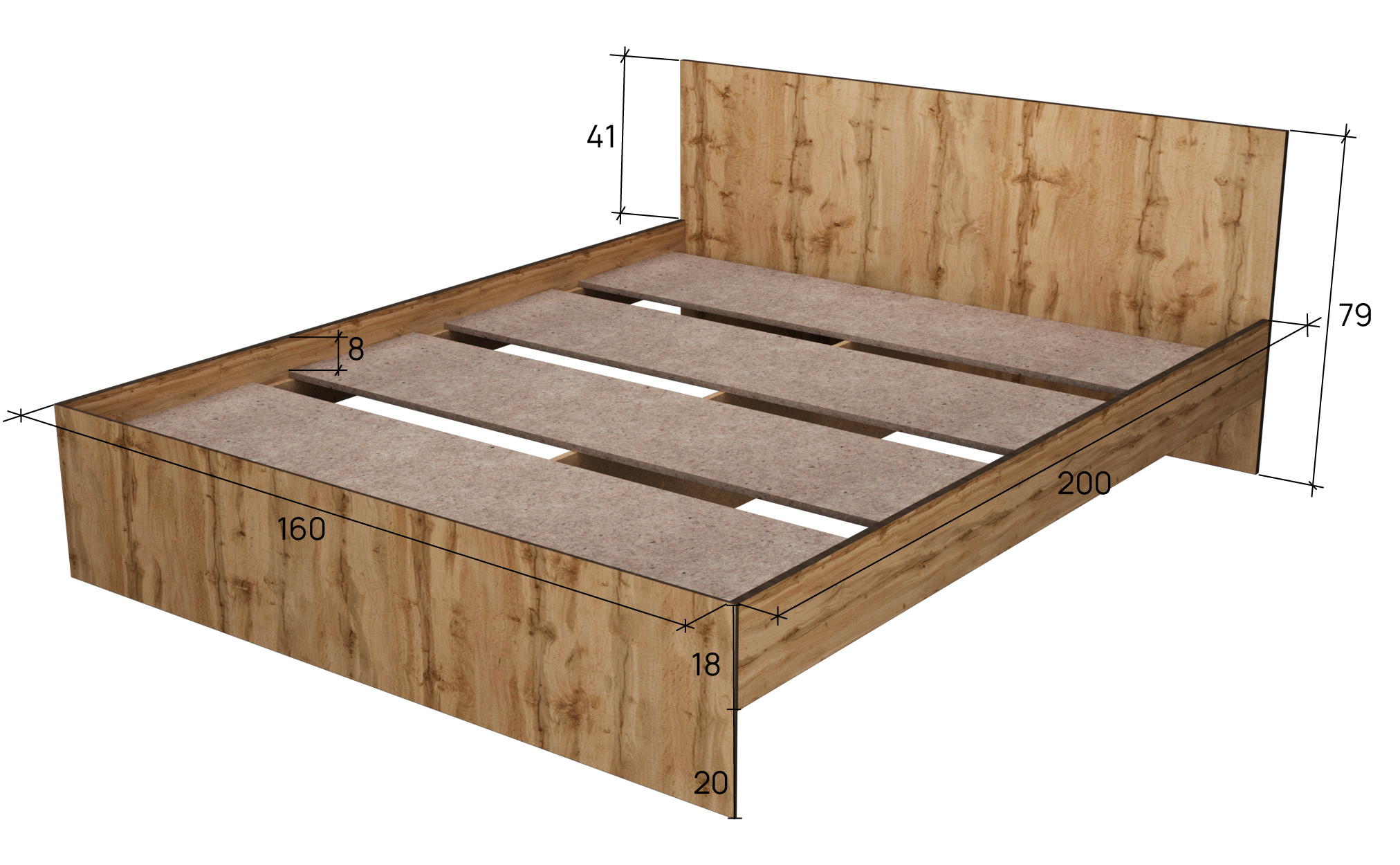 Двуспальная кровать серии ТВОЙ —представляет собой простой минималистичный внешний вид, без лишнего декора, такой дизайн делает кровать универсальным элементом мебели, создает пространство для идеального отдыха. Внутренняя обвязка имеет несколько поперечных широких перекладин, с центральной опорой.