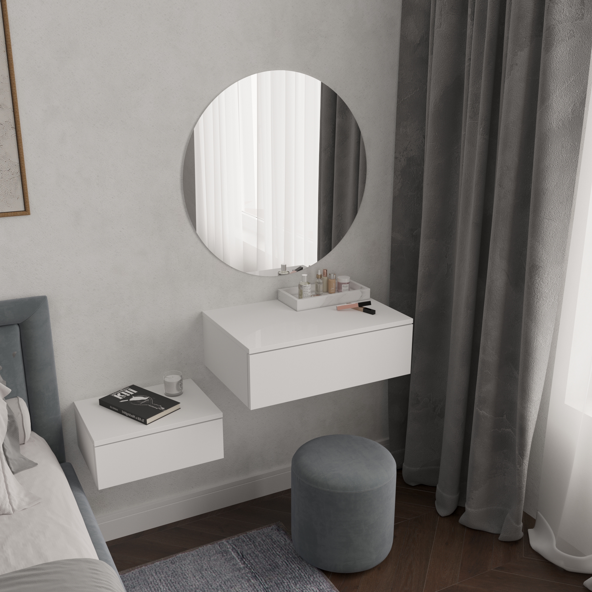 Подвесной туалетный столик — это компактное и современное решение для организации бьюти-зоны, которое крепится непосредственно к стене, не имея опорных ножек. Такая конструкция создает эффект «парения», визуально разгружает пространство и идеально подходит для небольших спален или прихожих.