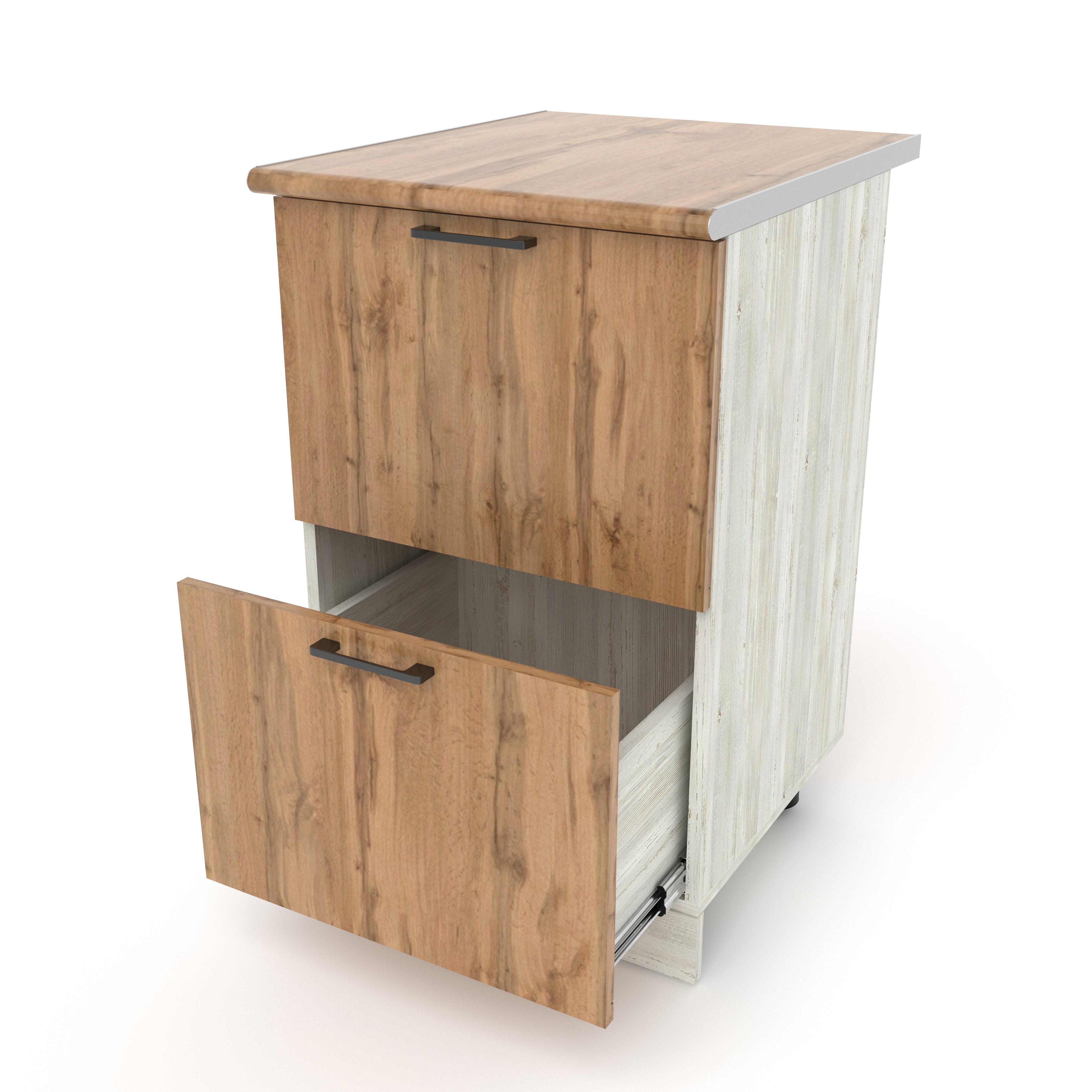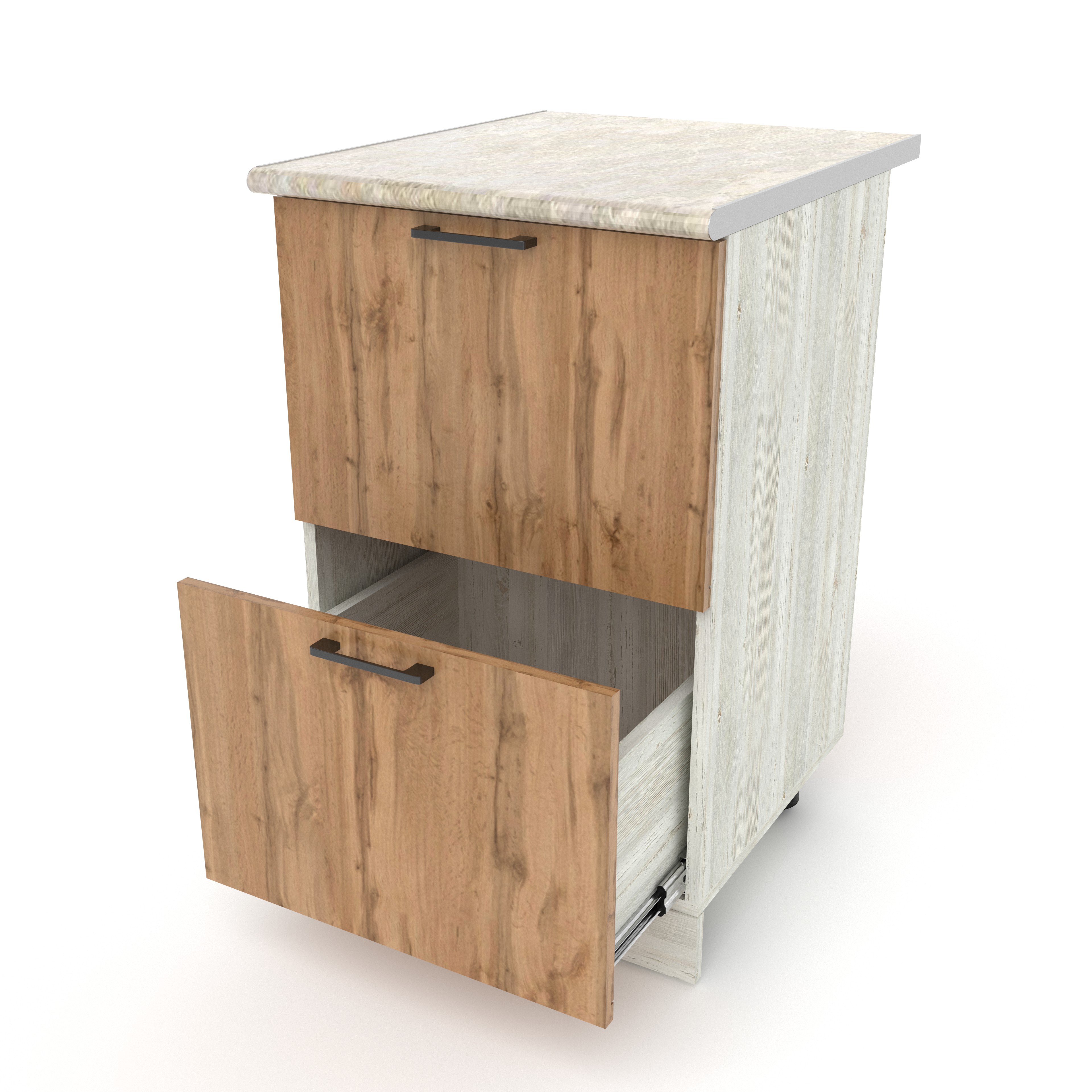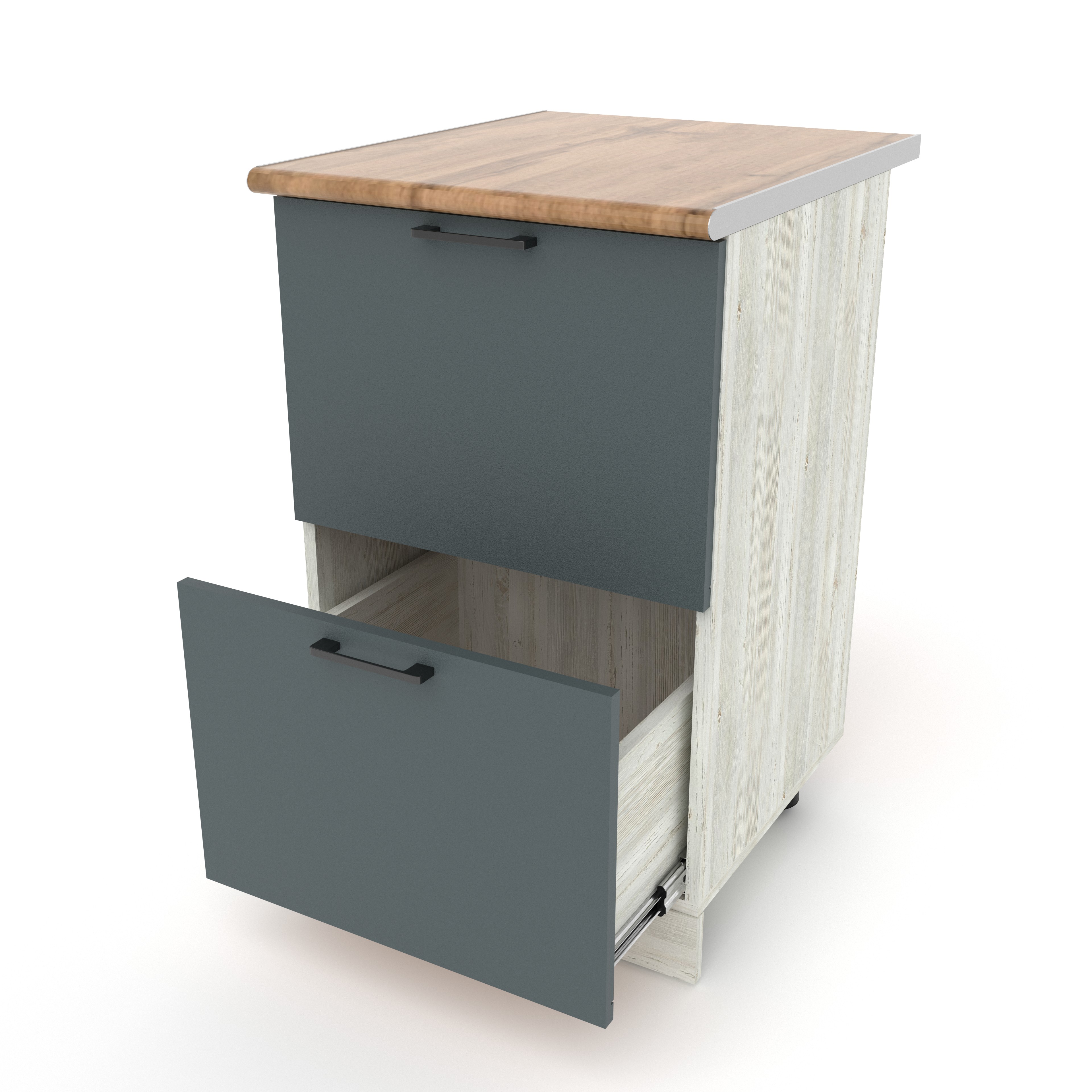 Разделочный стол с двумя глубокими ящиками - это универсальный напольный модуль, который за счет выдвижных систем обеспечивает более удобный доступ к вещам, чем обычные шкафы с полками.