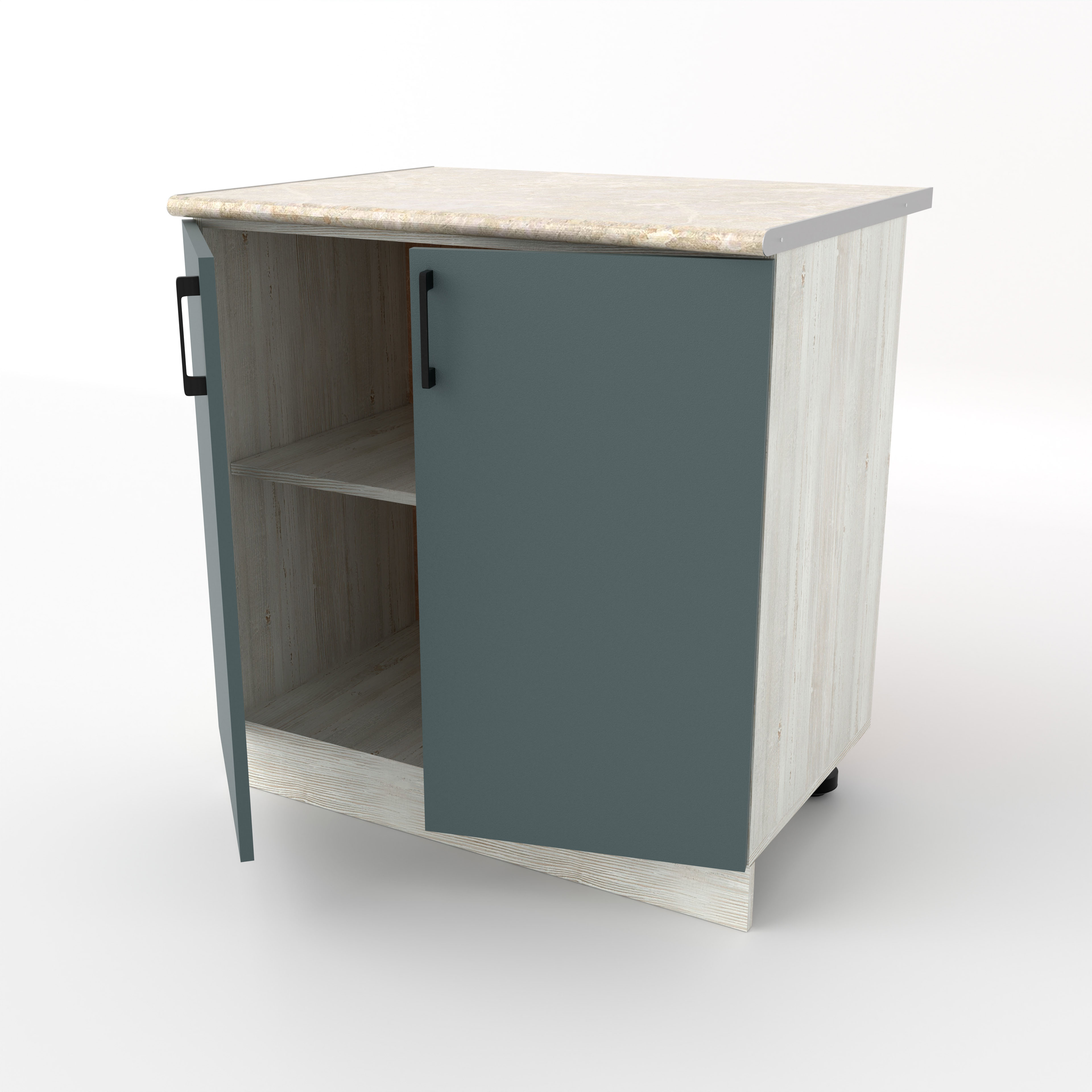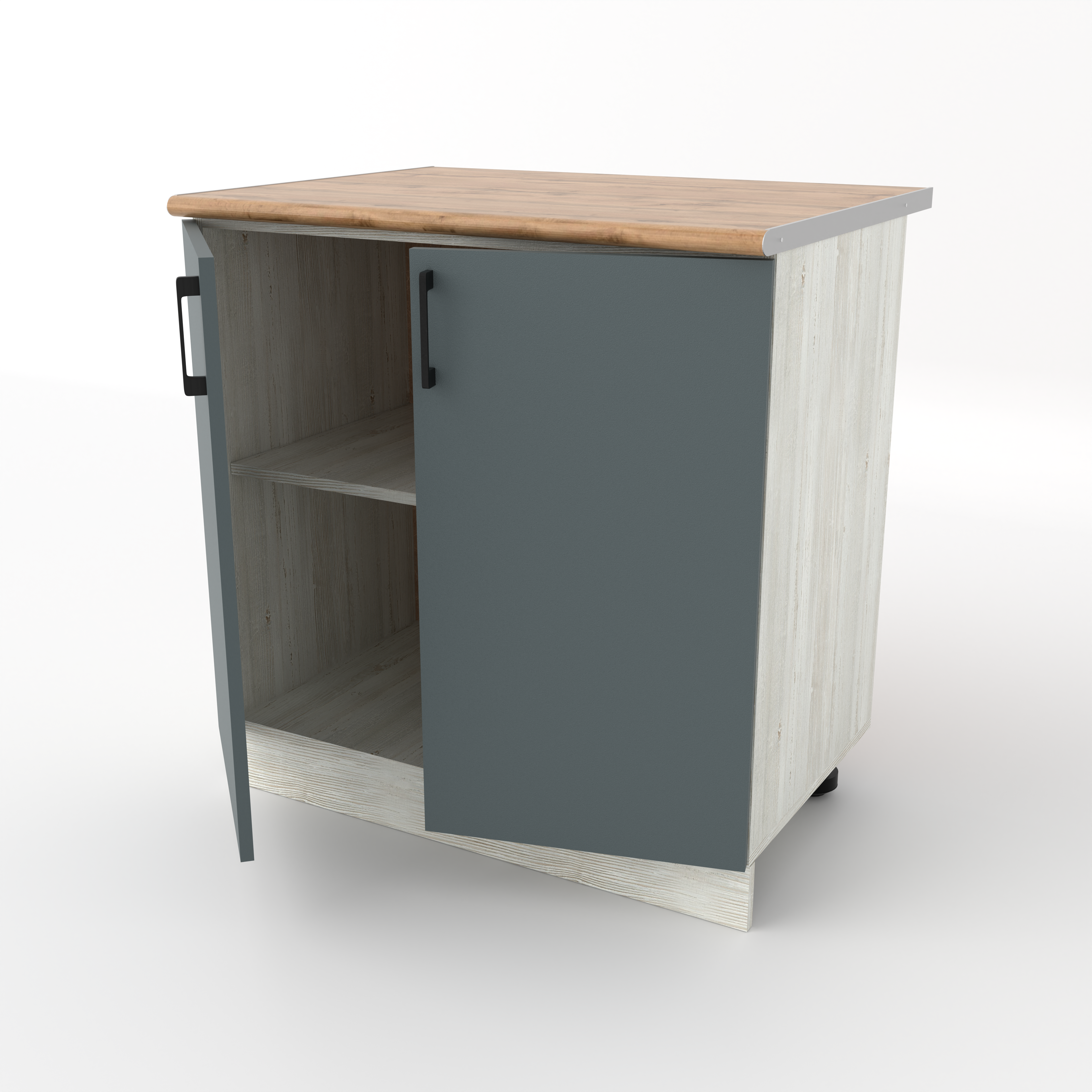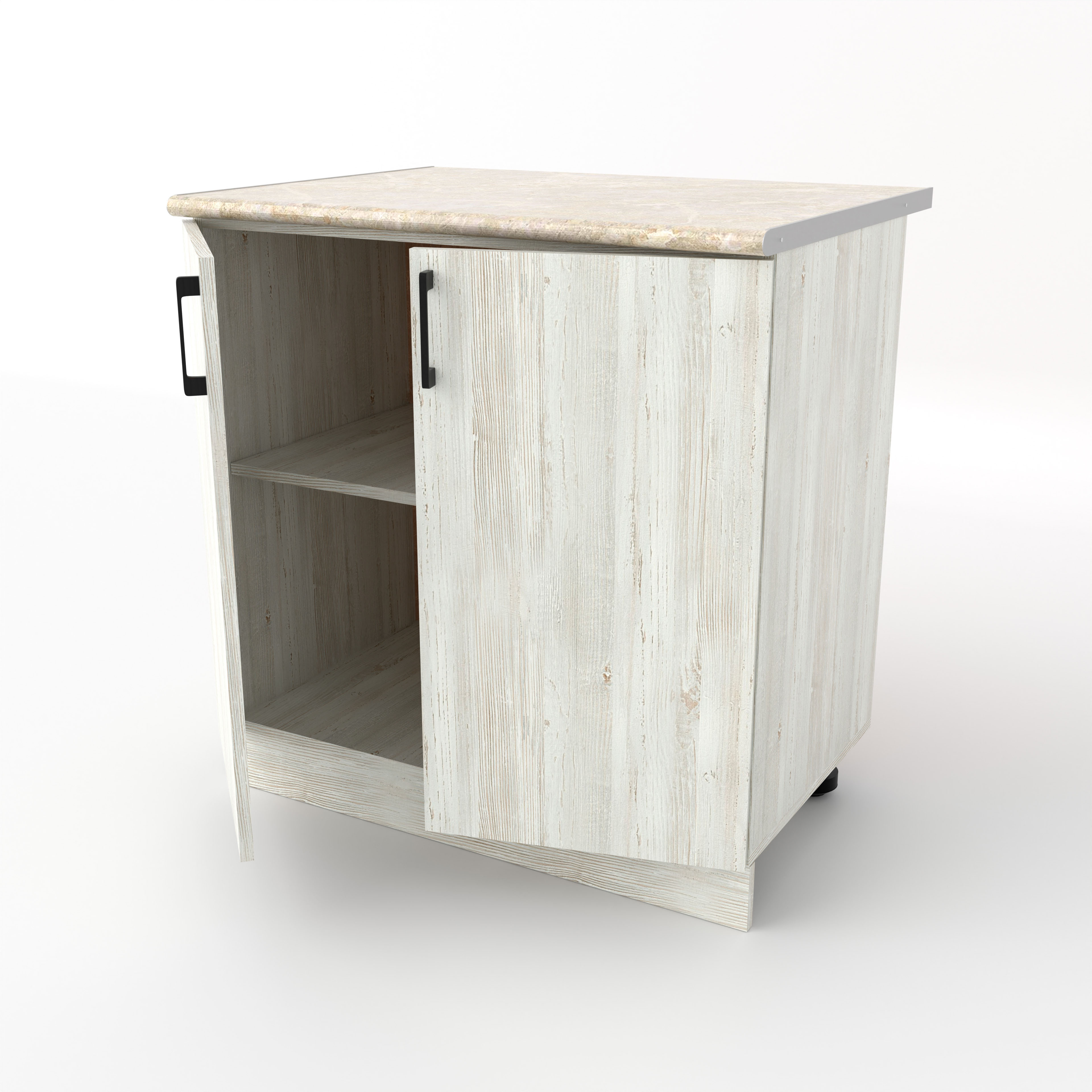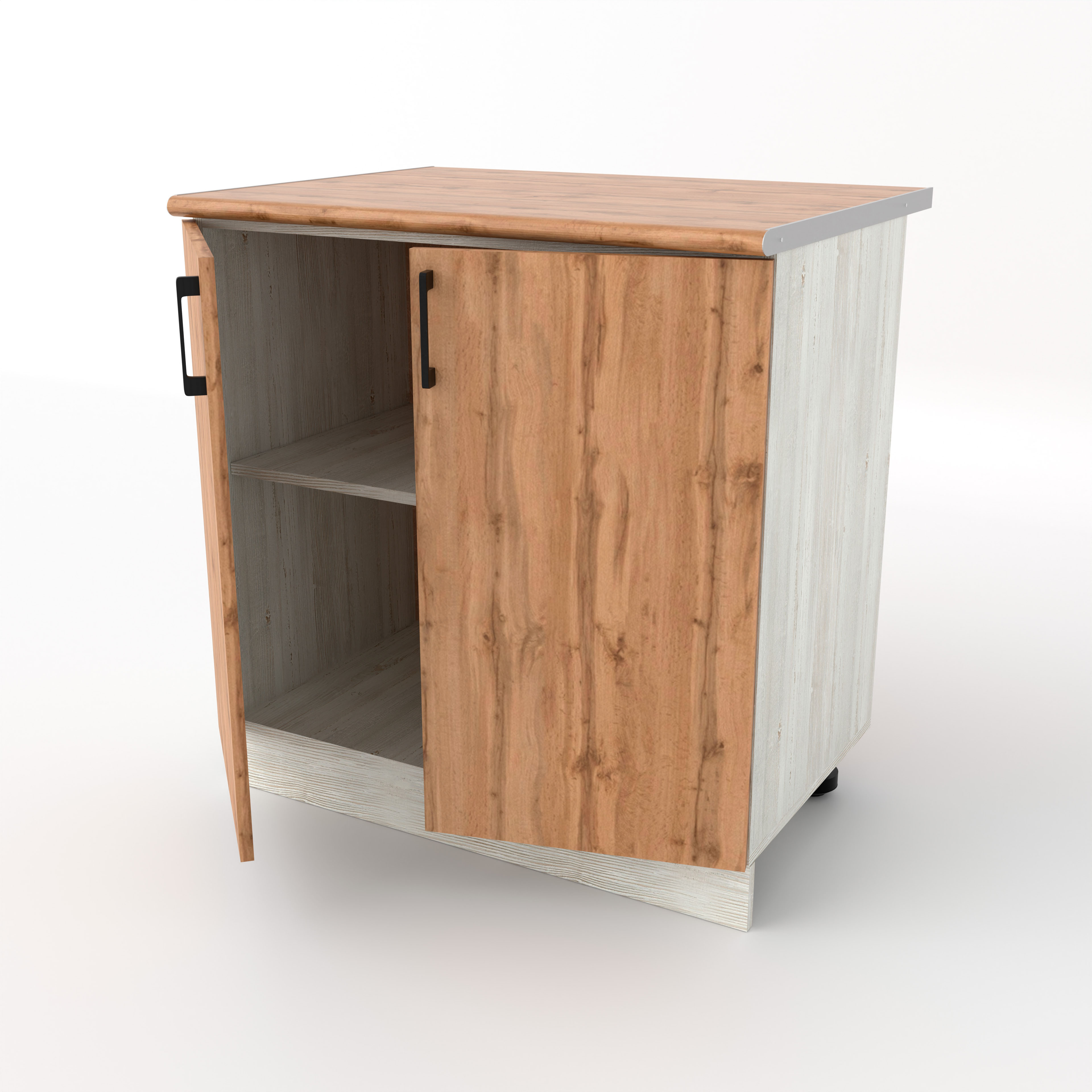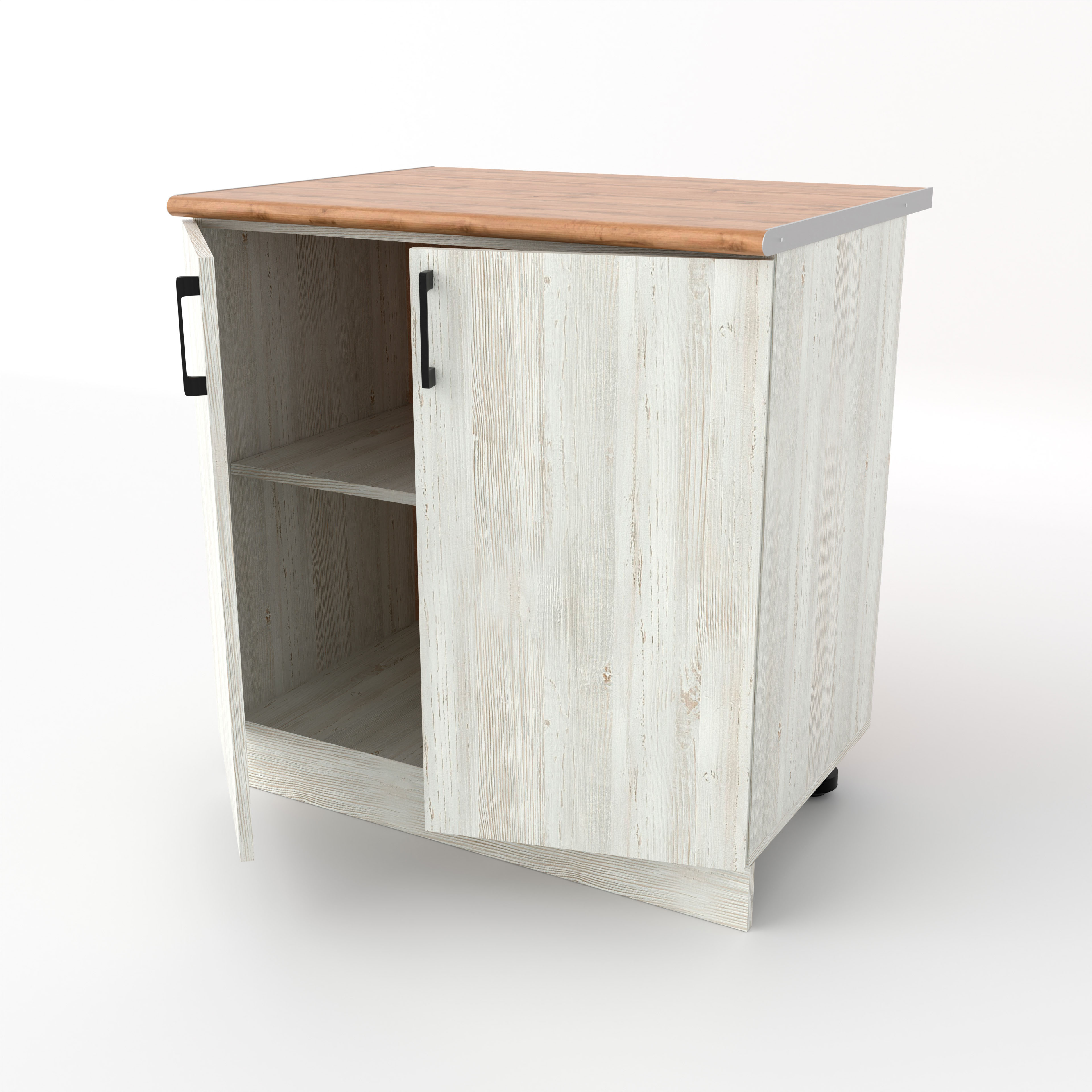 Разделочный кухонный стол с двумя распашными дверцами — это классический вместительный модуль, предназначенный для хранения крупного инвентаря и подготовки продуктов. За двумя дверцами скрывается широкое общее пространство, разделенное горизонтальной полкой. Это идеальное место для громоздких предметов: кастрюль, сковородок, кухонных комбайнов или высоких упаковок с продуктами.