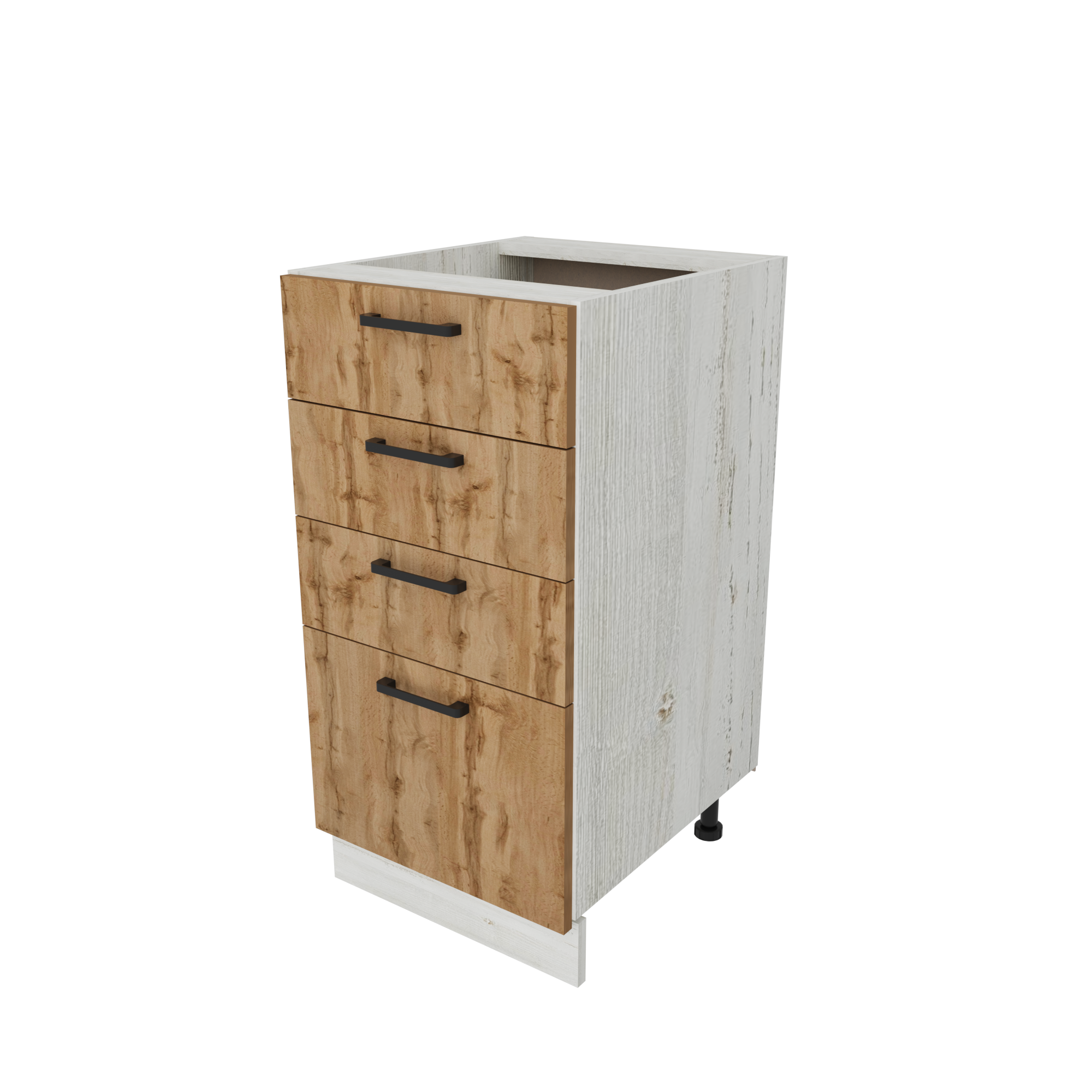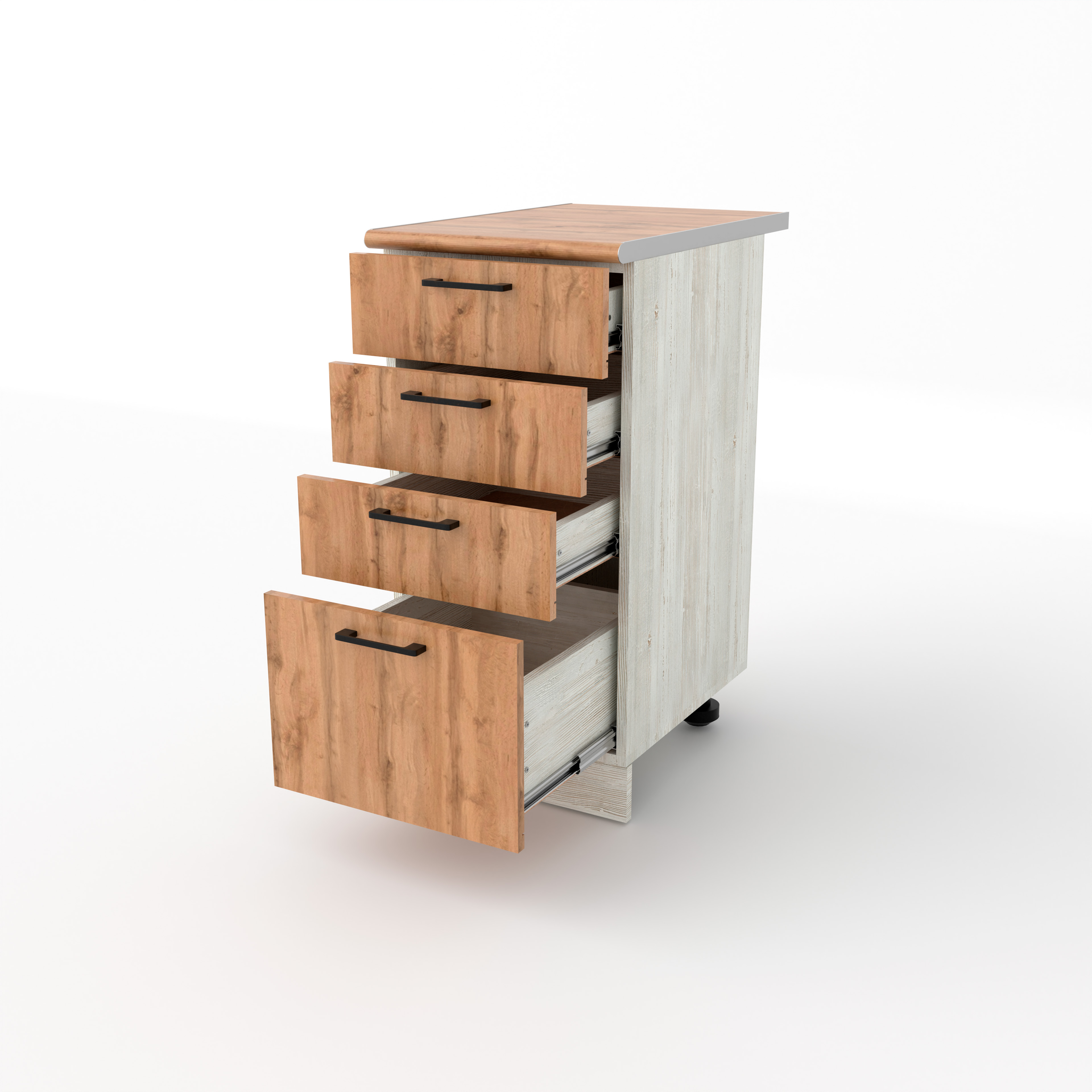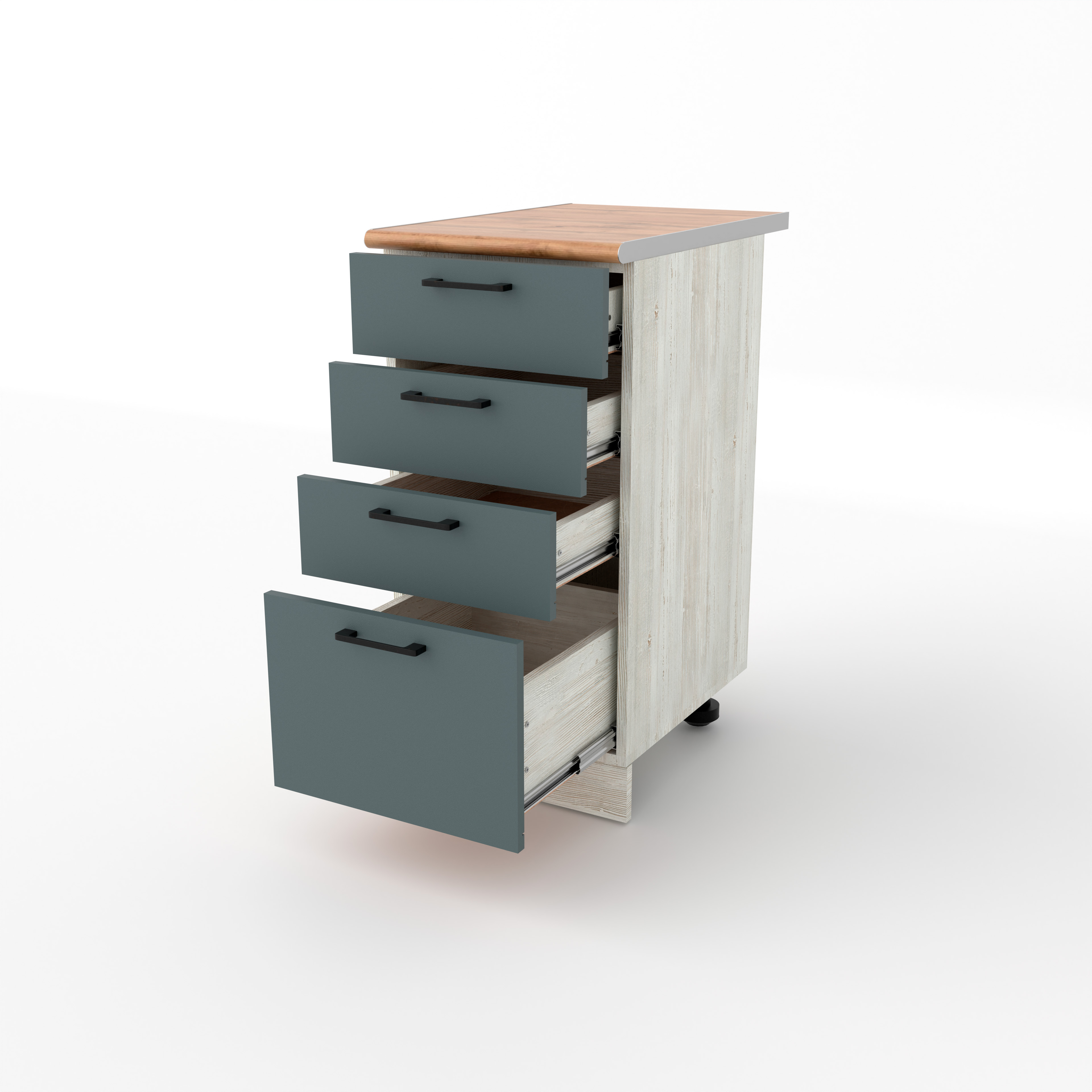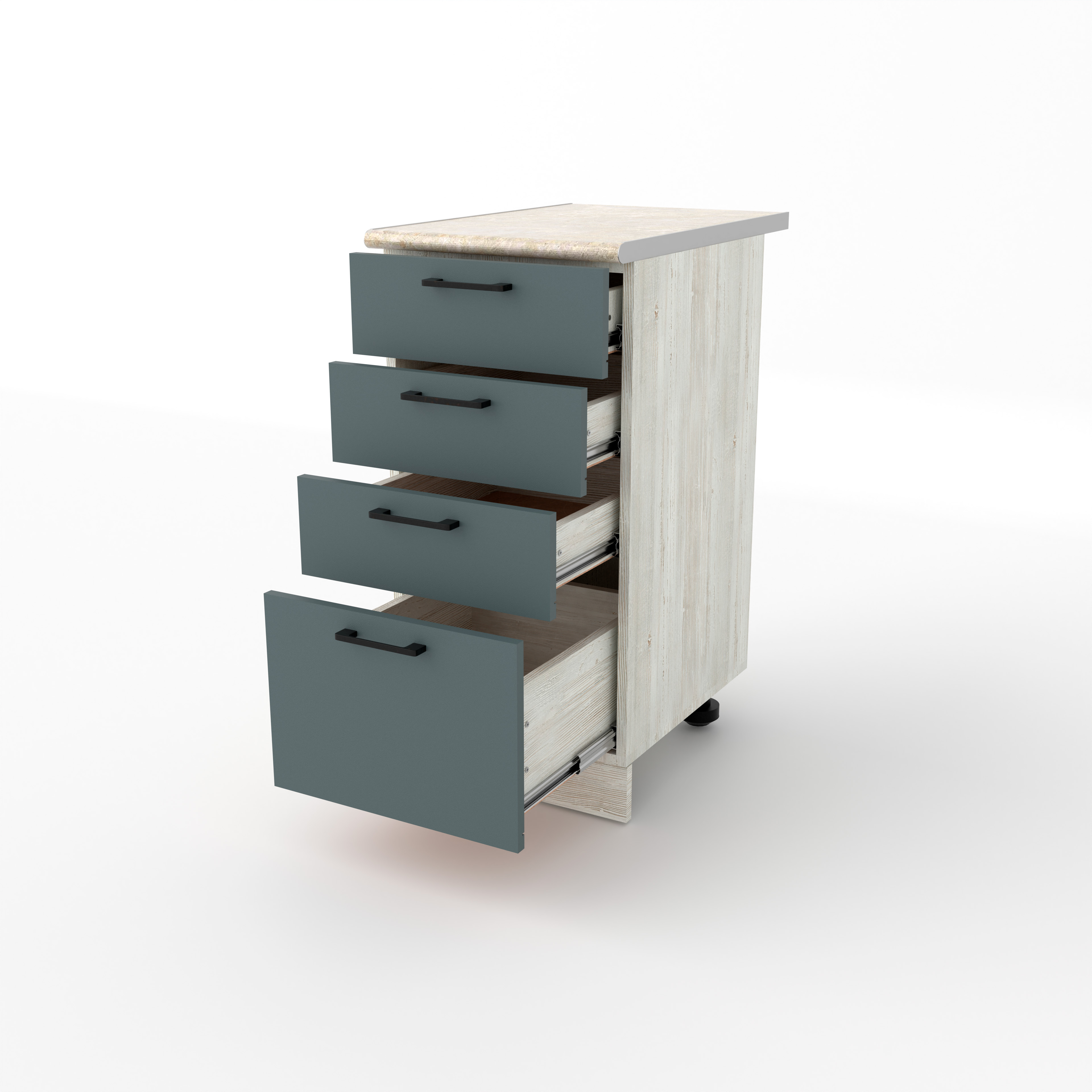 Разделочный кухонный стол с 4 выдвижными ящиками — это функциональный напольный модуль, предназначенный для хранения большого количества кухонных принадлежностей и подготовки продуктов. Верхние ящики: обычно используются для столовых приборов, ножей и мелких аксессуаров (открывашки, венчики).