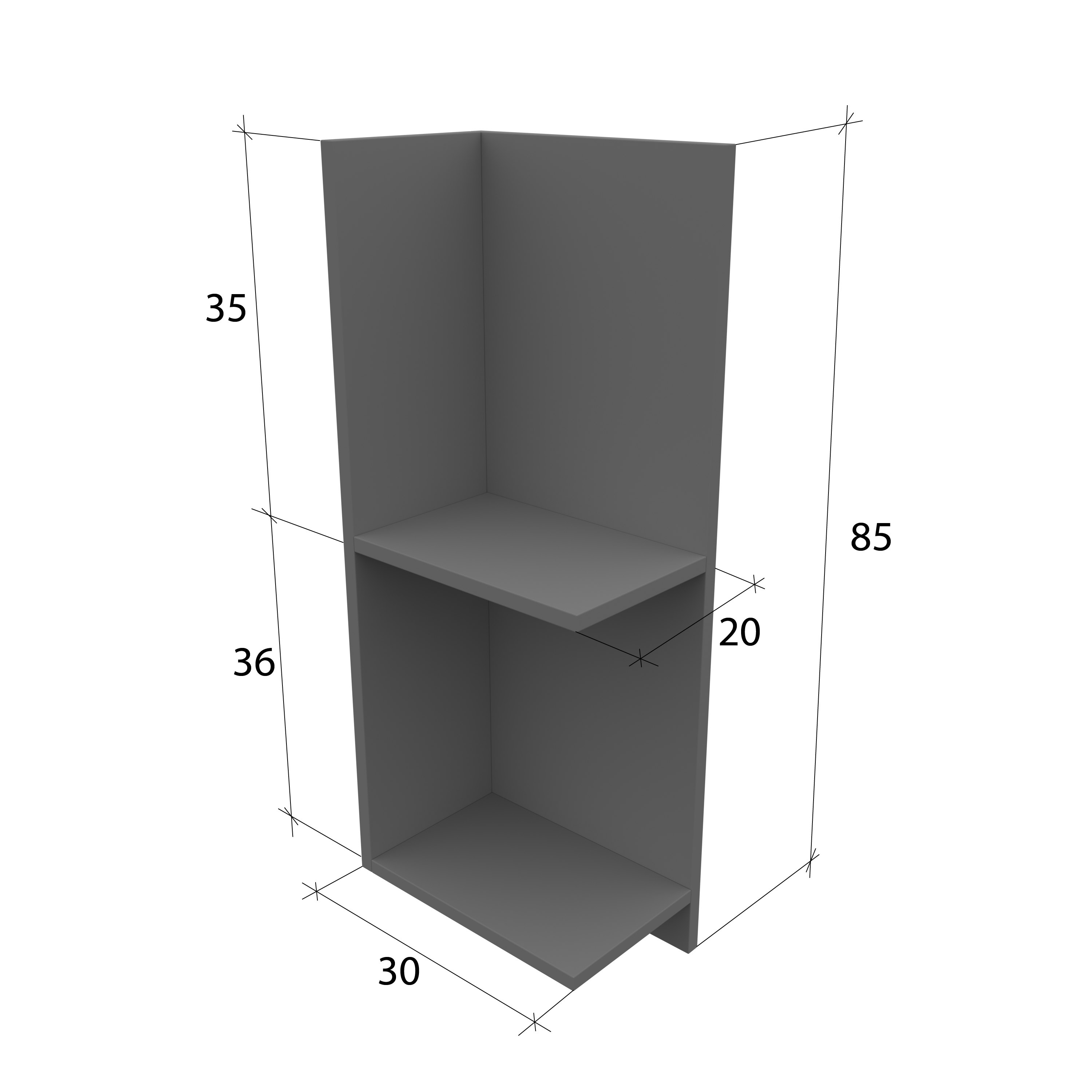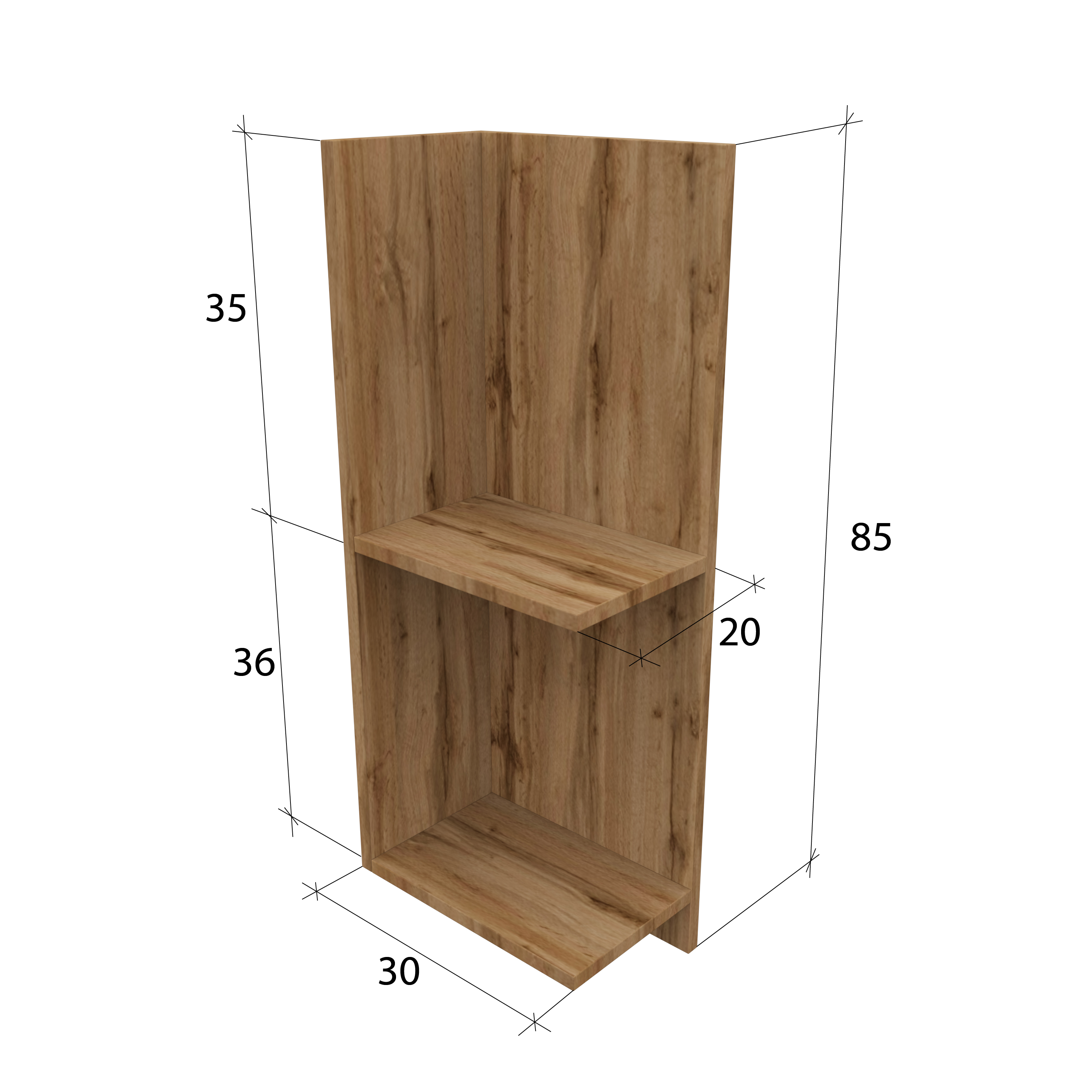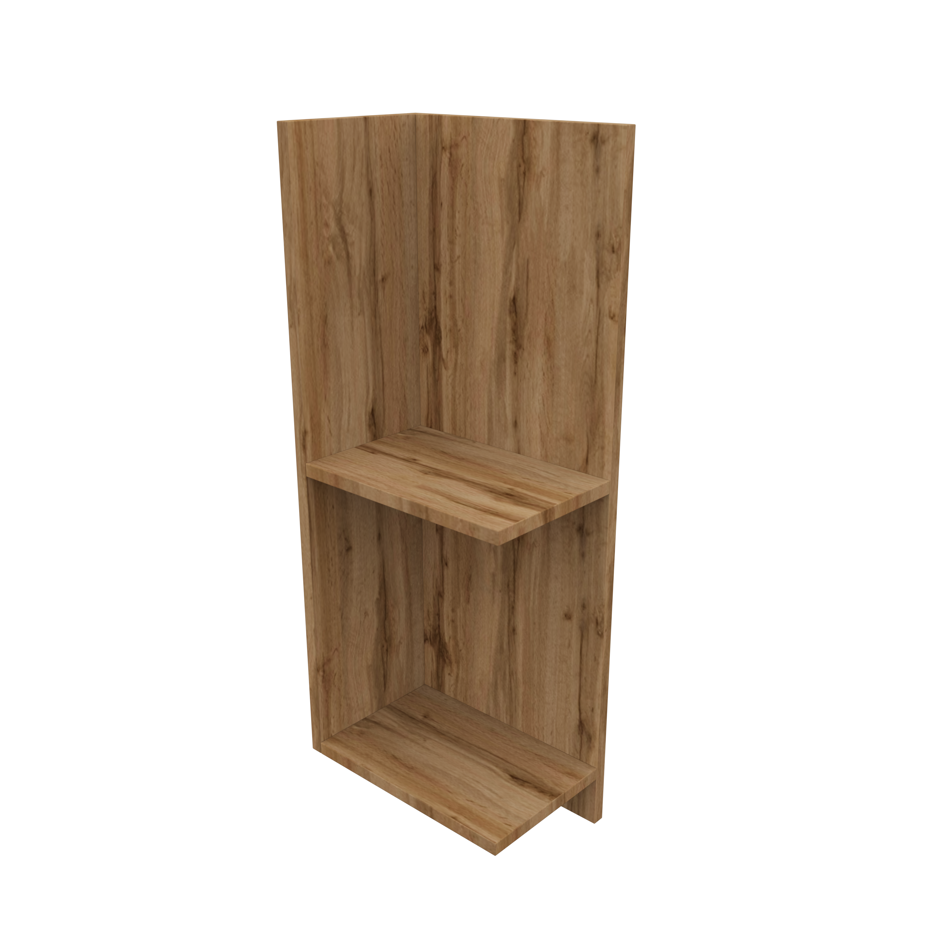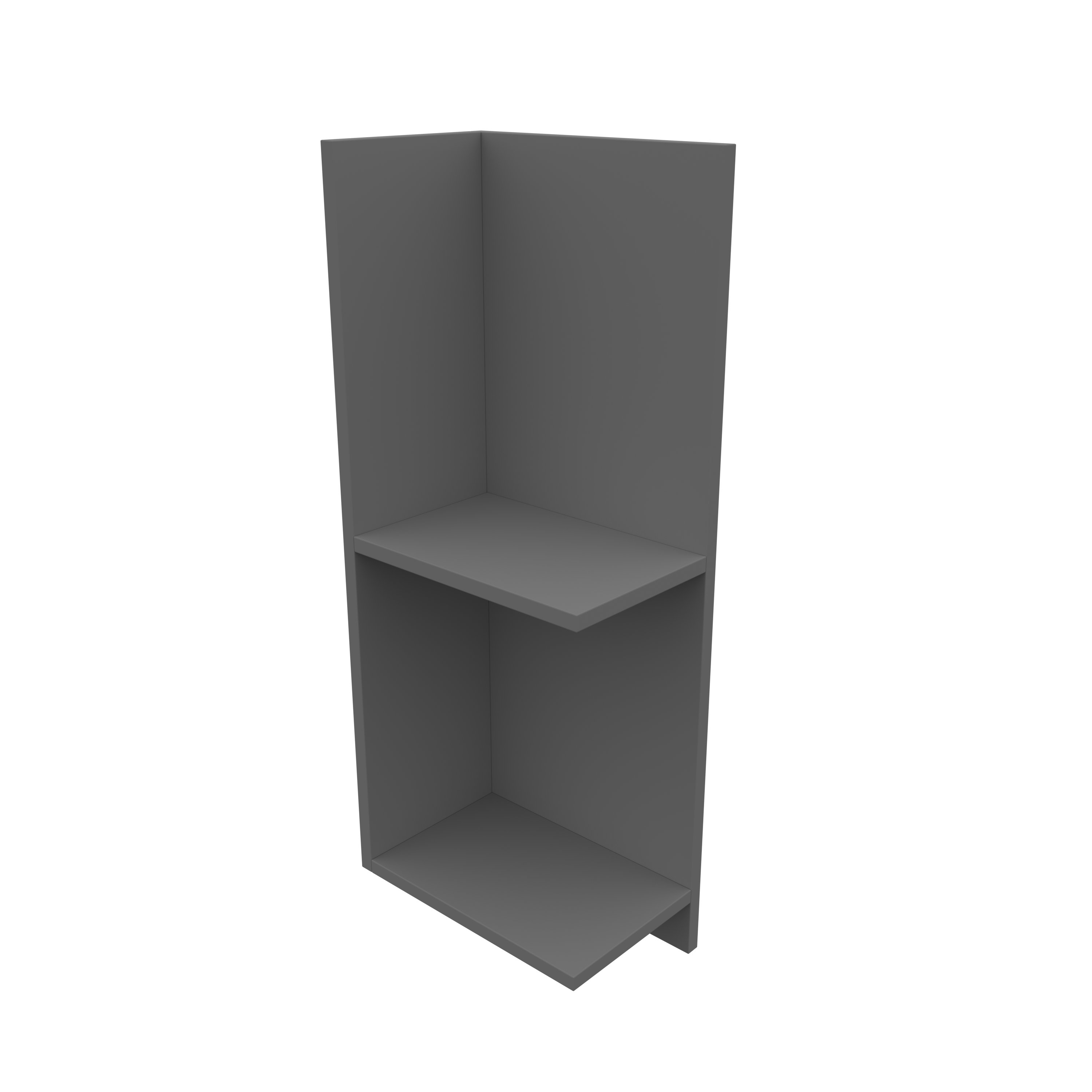 Нижняя угловая секция — это напольный модуль без фасадов, завершающий кухонный гарнитур или заполняющий внутренний угол. Она делает массивную нижнюю базу визуально легче и обеспечивает быстрый доступ к вещам.
