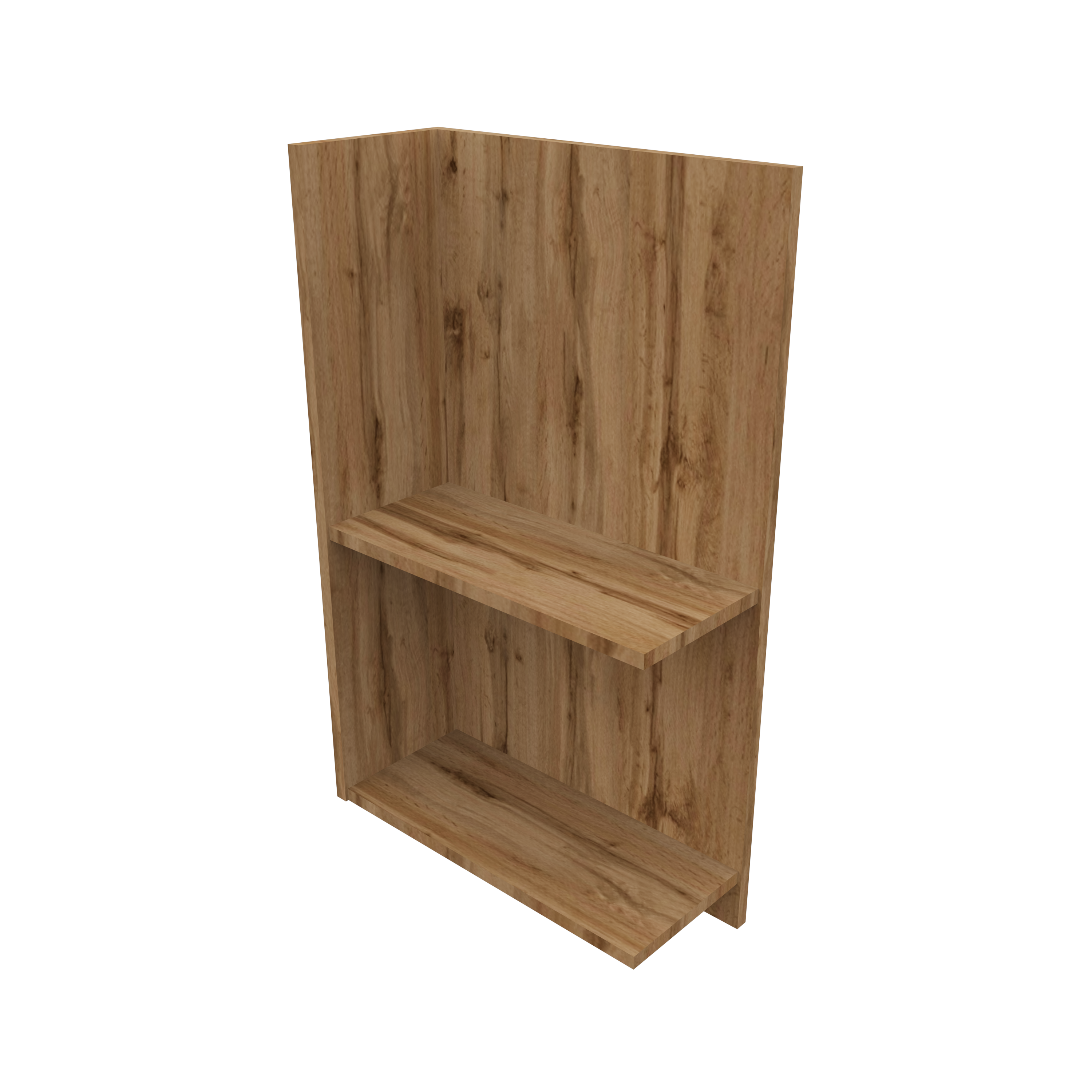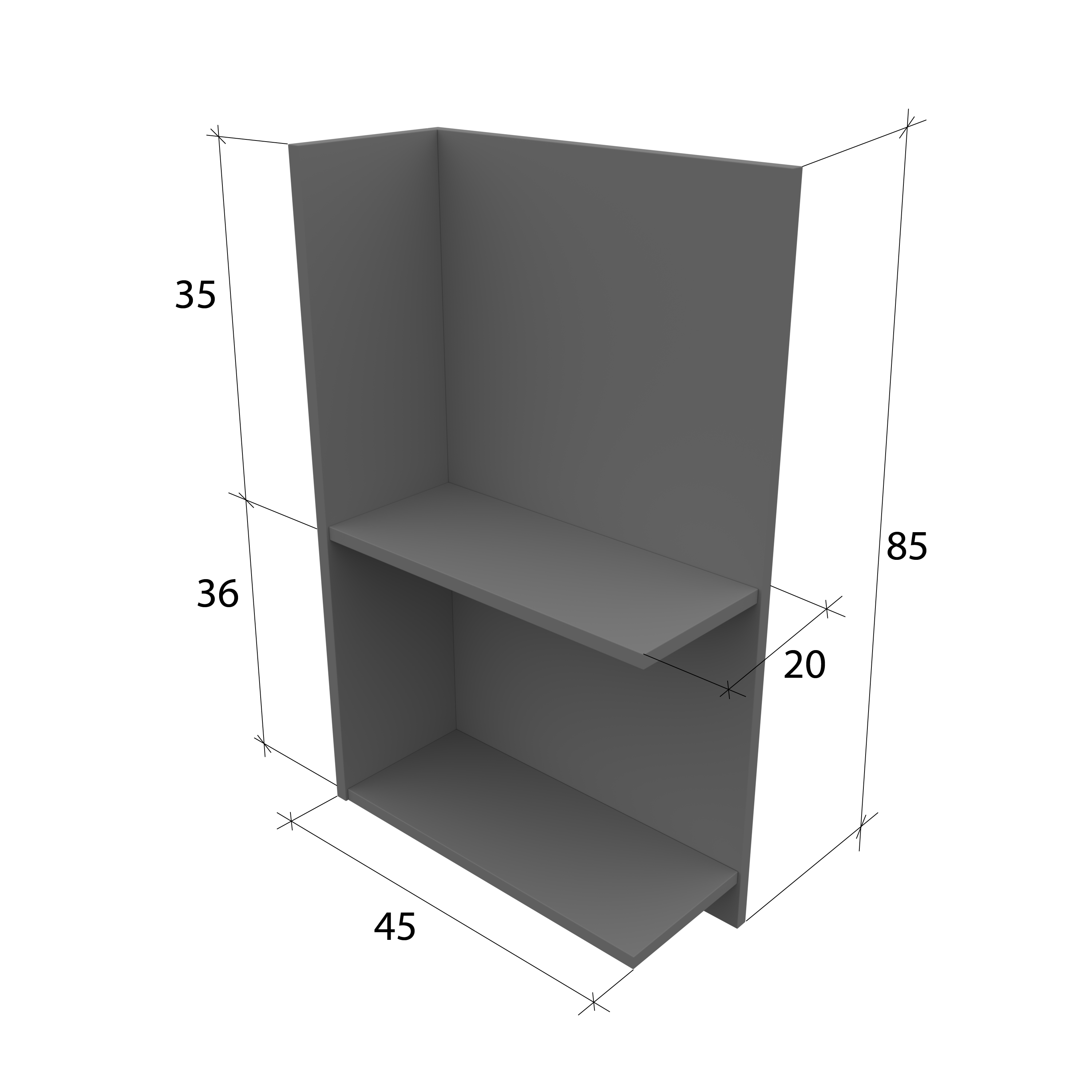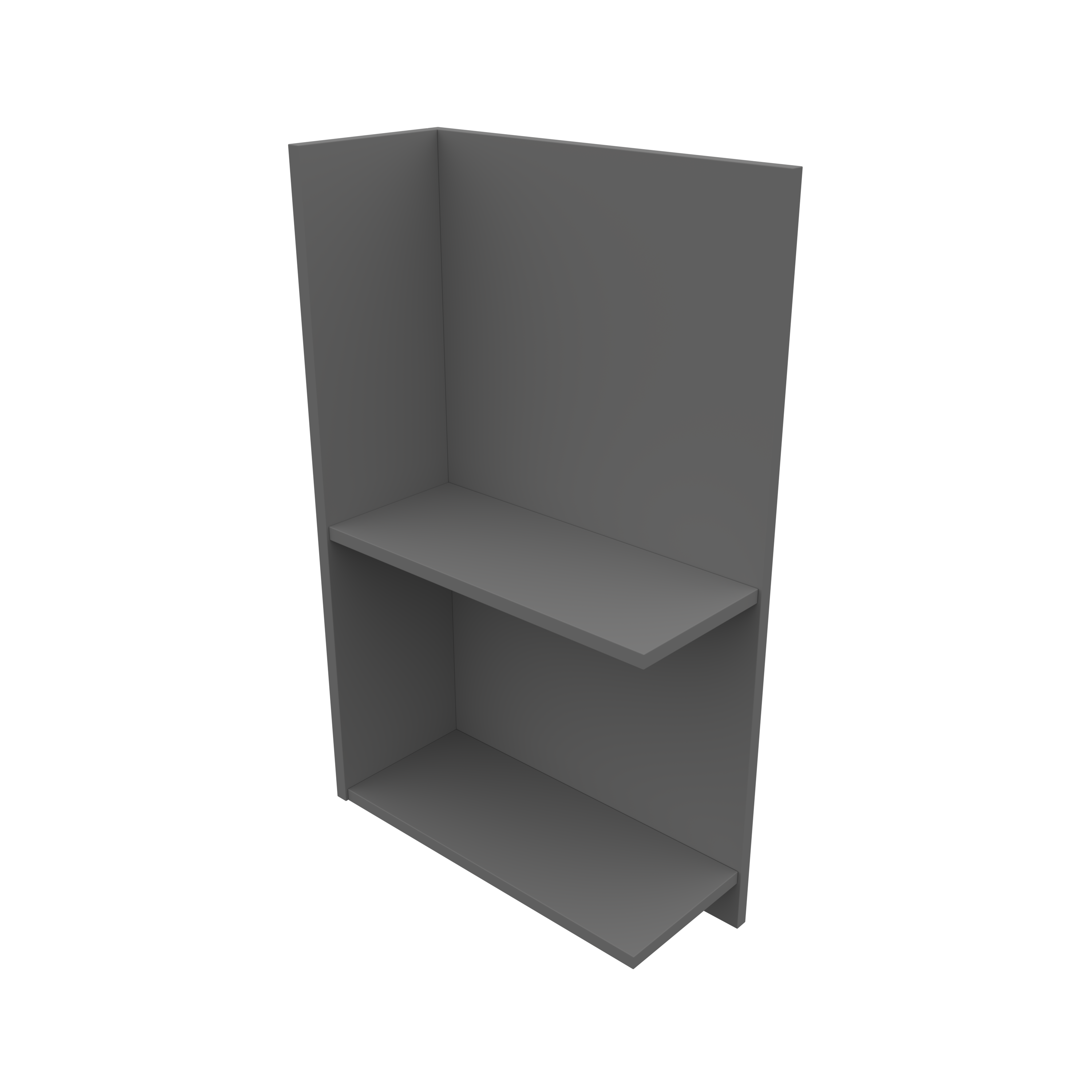 Нижняя угловая секция — это напольный модуль без фасадов, завершающий кухонный гарнитур или заполняющий внутренний угол. Она делает массивную нижнюю базу визуально легче и обеспечивает быстрый доступ к вещам.